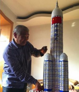 烏市七旬老人500個塑料瓶制1.5米高火箭模型